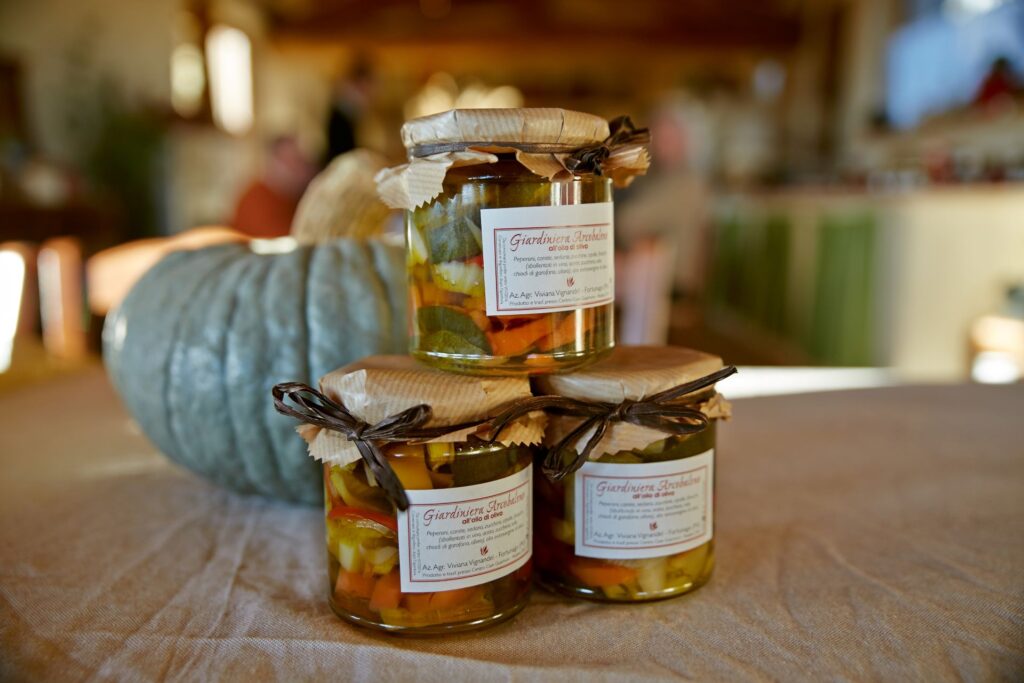 A un’idea così “originale”, ispirata da un profondo sentimento di bio-sostenibilità, hanno fatto da cornice, fin da subito, la coltivazione, sui 4 ettari di proprietà, di ortaggi, frutti, e l’allevamento di animali da cortile, ovviamente seguendo le regole della coltivazione biologica. Tutto il risultato di tanto appassionato lavoro, insieme a quanto la natura regala da sé, erbe spontanee aromatiche, bacche preziose, piccoli frutti dei rovi, è trasformato in composte, giardiniere, gelatine, salse. Una dispensa ricchissima alla quale attingere per i pranzi e le cene dei tanti avventori di questo posto dal cuore condivisibile.