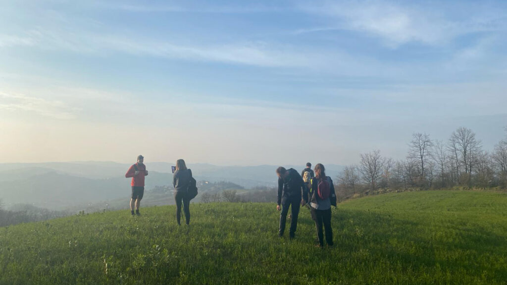Ci s’incamminerà poi lungo il sentiero del Pomorosso, un tracciato dal notevole valore paesaggistico e culturale, che si sviluppa lungo lo storico confine regionale. A ricordo di questa funzione restano fortificazioni e toponimi come quello di Tassara, dove si trovava l’antica dogana tra il Regno dei Savoia e il Granducato di Parma e Piacenza.
