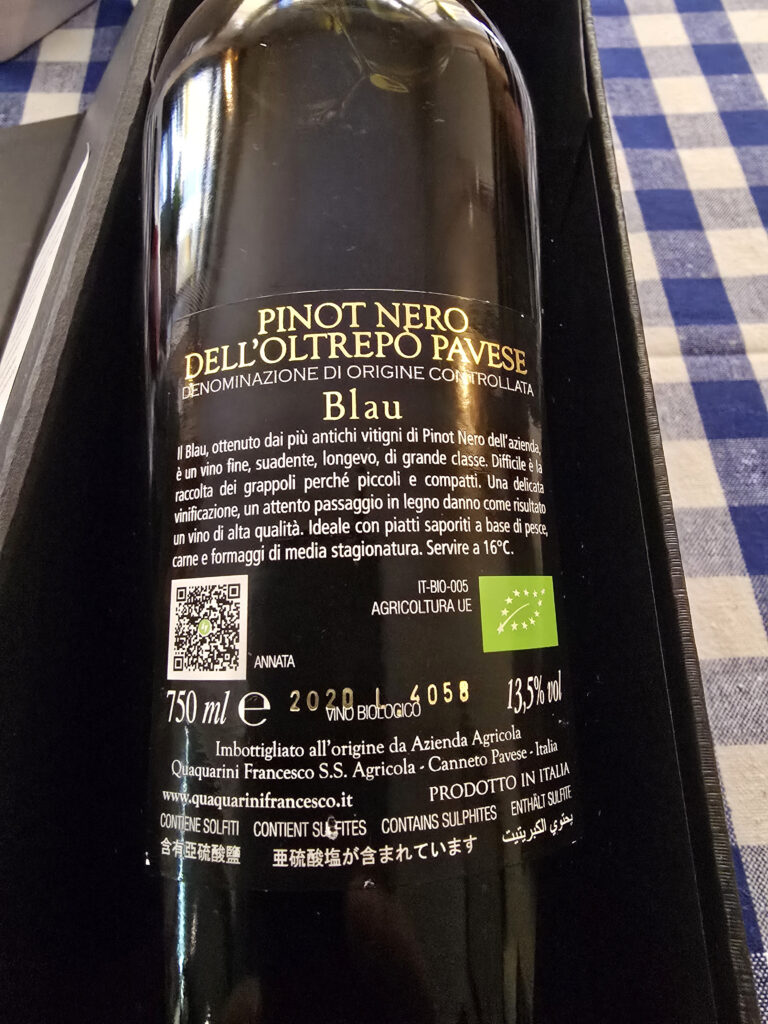 Il vino è il Blau 2020, in anteprima sull’uscita ufficiale, Pinot Nero intenso ed elegante che si presta a un lungo invecchiamento. Assonanza perfetta tra contenuto e abito della bottiglia: per colore, sfumature, ricchezza, misteriose e affascinanti note evocative di sottobosco e silenzi durante l’accurato affinamento in legno.