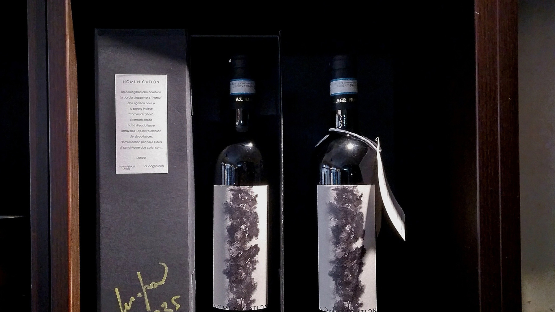 L’ultima iniziativa ha voluto abbinare lo Suminagashi di Bellucci a un vino che ne fosse altamente rappresentativo, nell’ambito della collezione Nomunication (combinazione del verbo giapponese nomu, che significa “bere”, e della parola inglese communication), giunta quest’anno al sesto esemplare, dopo tre Amarone, un Buttafuoco Storico e un Pinot Nero